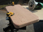 | 1 First, the boards are planed to thickness. I like to make signs at least 1-1/2 inches thick to guard against splitting and warping. | | 5 An adhesive paper mask is applied to the face of the sign. The pattern is transferred to this paper. |